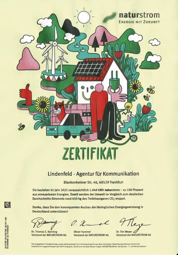 Nachfolgend ein paar Beispiele für Nachhaltigkeit in einer Marketing-Agentur: